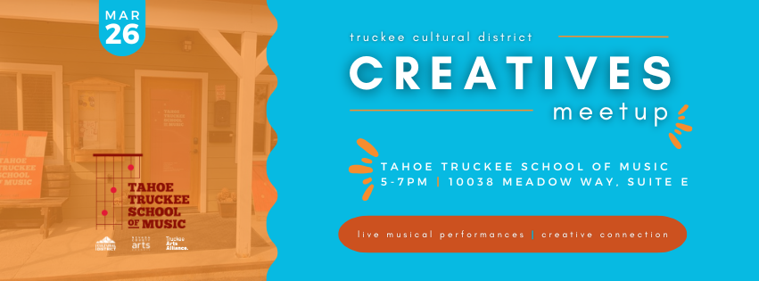 Connect, collaborate, and share ideas with Truckee’s vibrant creative community at our monthly gatherings hosted in partnership with the Truckee Tahoe Arts Alliance. Meetups happening January-May, then we take a pause to host and showcase local artists in our community booth space at the summer Truckee Thursdays street fair. Meetups resume for September-November. In December we encourage the community to catch a local performance, visit a gallery or participate in cultural activities throughout Truckee to support Keeping it Local for the holiday season.